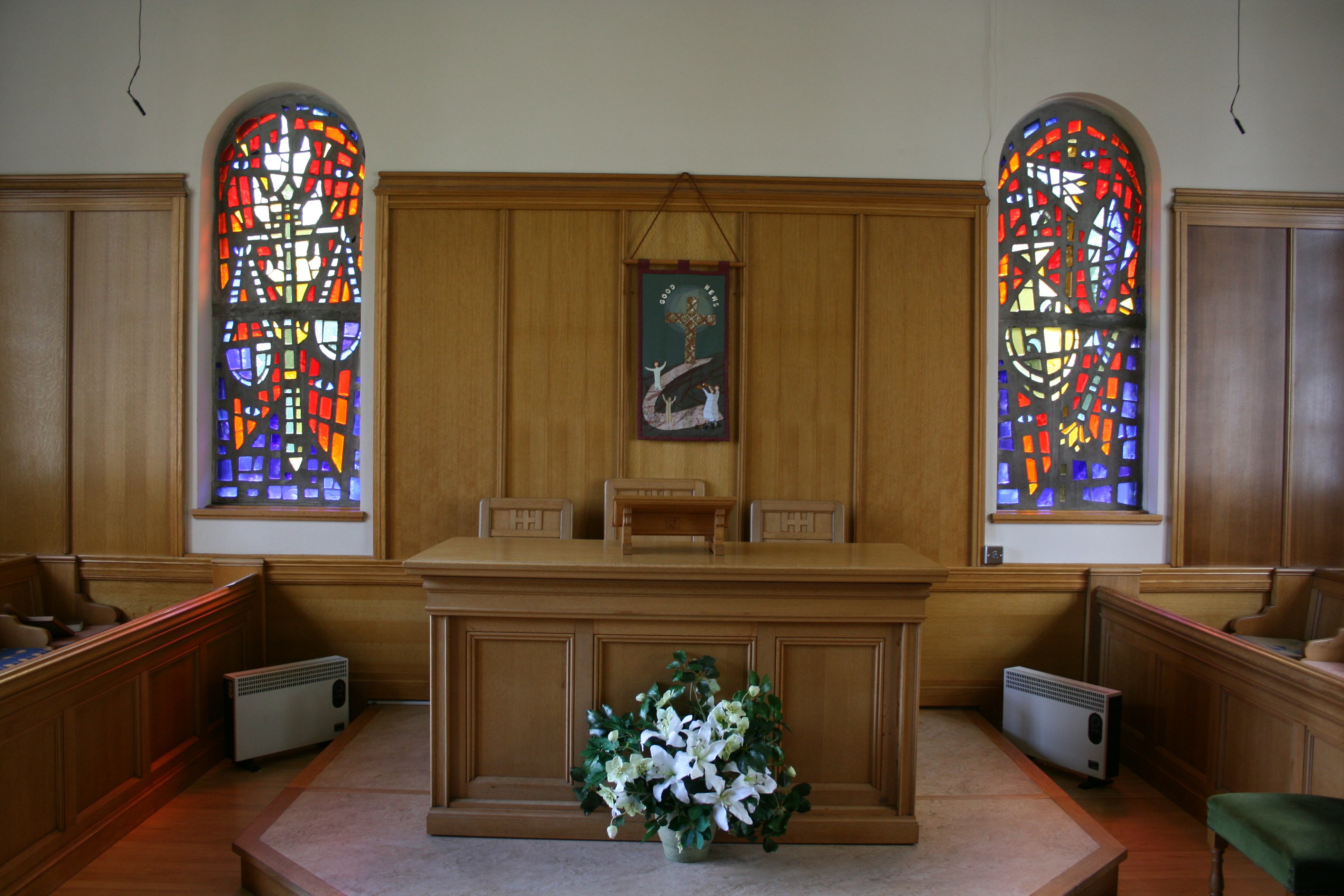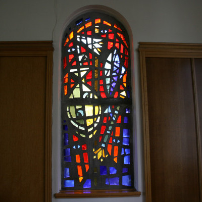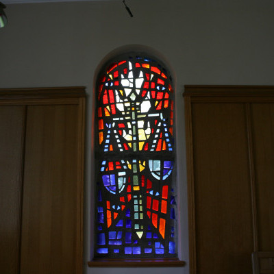 The Session House Windows by the well-known Scottish stained glass artist, Sadie McLellan (1914 - 2007) were donated by Killearn Trust. The modern style is known as 'Dalle de Verre'. or faceted glass, using think, cast glass, set in concrete or epoxy resin.